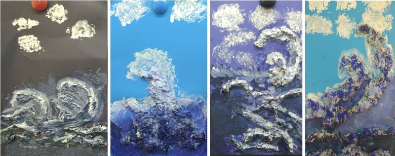 Рисунок моря в технике «оттиск мятой бумагой» и «барельеф»