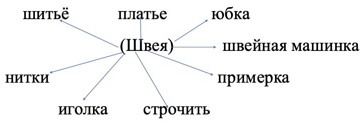 Специфично – профессиональную группу слов можно раскрыть с помощью ассоциаций, которые вызывают у первоклассника определённые слова:
