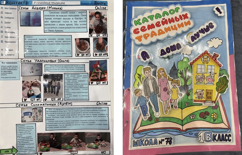 - Сбор детских работ на тему «Моя семейная традиция!». Поощрялось творчество, фантазия и инициатива детей. Педагог предусмотрел возможность для каждого представить свой проект классу. Помощь детям подготовить небольшие выступления, рассказы о проделанной работе.