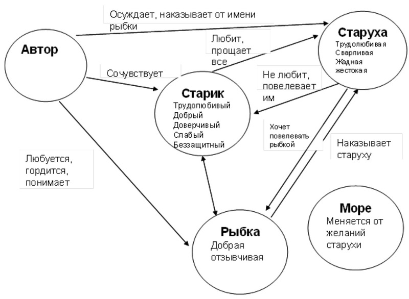 Характеристика старика и старухи, рыбки ( работа в по карточкам)