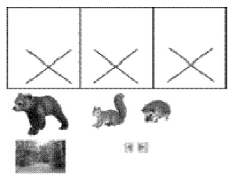 3. Задание на составление загадки с опорой на схему (рис. 3): детям предлагаются картинки и схема. Ребятам необходимо озвучить текст загадки и отгадать её. В случае правильного ответа педагог отодвигает «ширму» и показывает картинку-отгадку.