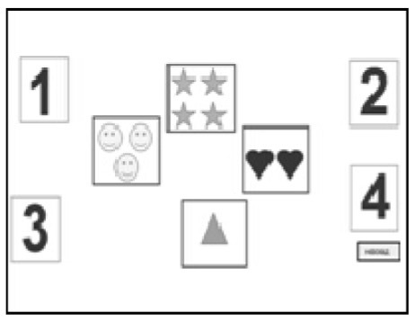 1. Задание на соотнесение числа с количеством (рис. 1): педагог предлагает детям найти карточку с цифрой и сопоставить её с карточкой с предметами. Дети поочерёдно подходят к интерактивной доске и двигают карточки с предметами к карточке с изображением соответствующего числа.