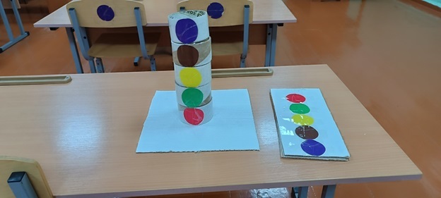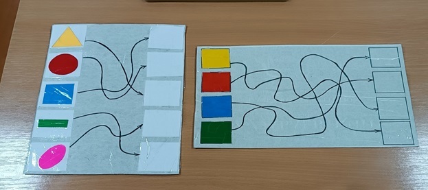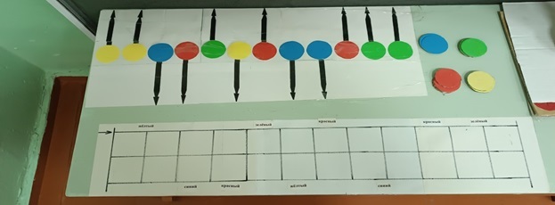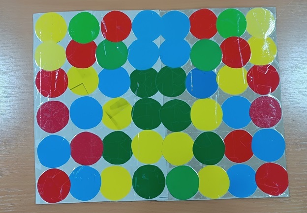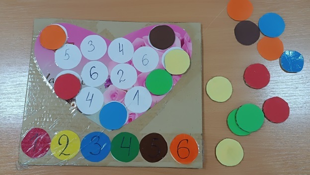 После урока математики раскладываем кружочки, говорим какого они цвета, когда собираем считаем по одному.