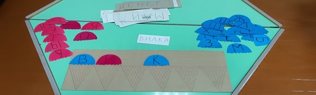 Чтобы ребёнок хорошо запоминал названия дней недели я распечатала расписание уроков на отдельные листочки и он после звонка выкладывал их на доске прикрепляя магнитиком. Он готовится к урокам, как вполне полноценный ребёнок. Кладёт на парту учебник, ручку, тетрадь. Встанет около парты и говорит «Здравствуйте, садитесь». После окончания урока убирает учебник на своё место, снимает с доски название урока, который прошёл и готовится к следующему уроку. Никогда не выходит на перемену пока не напишет на тренажёре разные слова. Слова пишем после урока чтение.