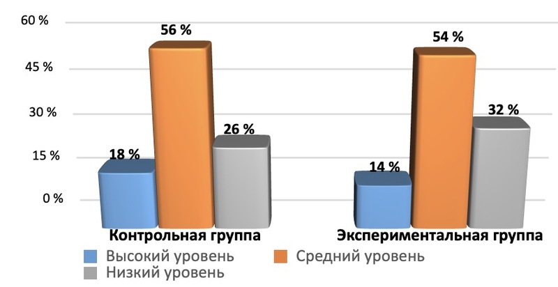Результаты исследования указывают на необходимость использования исследовательского метода по развитию познавательных УУД у младших школьников: в экспериментальной группе высокий уровень на 4% меньше, чем в контрольной, средний уровень на 2% ниже, чем в контрольной группе, низкий уровень на 6% выше, чем в контрольной группе.