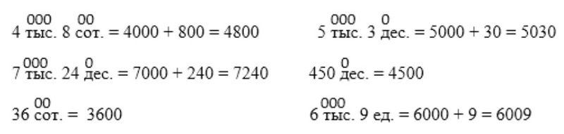 4. Запись четырёхзначных чисел в виде суммы разрядных слагаемых.
