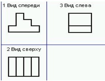На доске даны виды конструкций: вид спереди, вид сверху, вид слева.