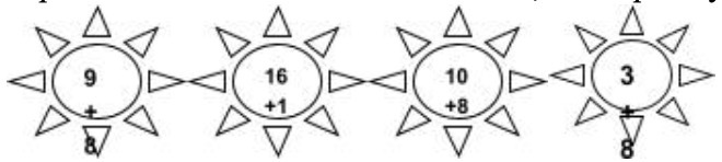Игра на внимание. - Найди солнышко, в котором сумма чисел равна 11