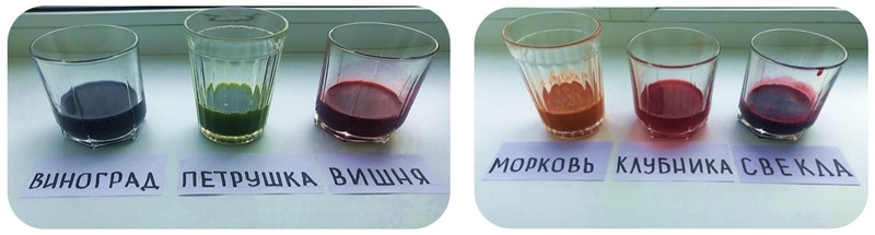 В итоге- мы получили сок шести цветов! Это и есть пигмент – натуральный краситель.