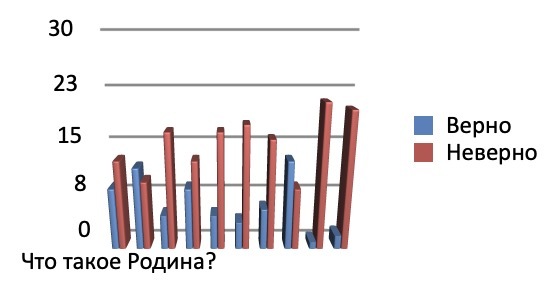 Проведённый анализ данных анкетирования позволил установить, что уровень осведомлённости детей о патриотизме остаётся неудовлетворительным.