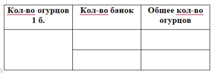 Кол-во огурцов 1 б. Кол-во банок Общее кол-во огурцов ? кг одинаковое 4 б. 8 кг ? б. 40 кг