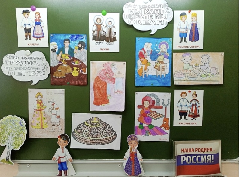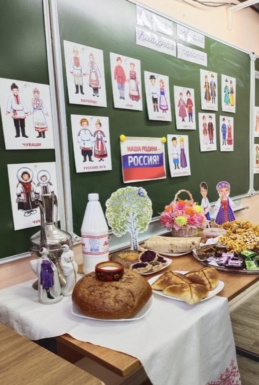 В 3 «Б» классе было проведено мероприятие «Гостеприимство народов России». В классе есть ученики не только с русскими корнями, но и с молдавскими, тюркскими, еврейскими, саамскими, цыганскими, азербайджанскими. Много интересного услышали об особенностях культуры, быта. Ученики принесли национальные блюда, костюмы, семейные реликвии. Приглашенные родители сыграли на балалайке, спели русско-народные песни.