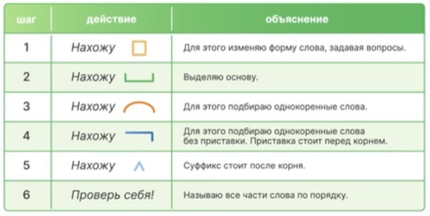 - Давайте сравним и выделим общую часть. Какой корень в слове подсказка? - Четвертый шаг: найдем приставку. Для этого подберем слова с другими приставками (рассказать, пересказать). В этом слове приставка под. - Пятый шаг: найдем суффикс. Что для этого нужно сделать?