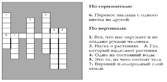 - Чтобы узнать первый вопрос, который мы должны рассмотреть, я предлагаю каждой группе отгадать кроссворд. Вам надо за 2 мин отгадать как можно больше слов. Победит та группа, которая успеет за это время полностью решить весь кроссворд. - Обменяйтесь листами с кроссвордами. Проверим записанные вами слова. (Обмениваются листами по часовой стрелке, я зачитываю слова, проверяют) - Сколько слов правильно отгадала каждая группа? - Какое слово у вас получилось? (Опыление) - А знаете ли вы, что это такое? (Опыление — это перенос пыльцы с одного цветка на другой цветок.) - Однажды ученые поставили такой опыт: на грушевом дереве перед цветением выбрали две ветки с одинаковым числом бутонов. Одну из них накрыли марлей, чтобы к цветкам не могли проникнуть пчелы, а другую оставили открытой. - И что же получилось, как вы думаете? - На той ветке, где на цветки прилетали пчелы, образовалось 33 груши. А на ветке под марлей — ни одной. Значит, насекомые не просто кормятся на цветках, они еще и выполняют работу, без которой не могут образовываться плоды и семена. Эта работа — опыление цветов. В цветках, кроме нектара, есть пыльца — мельчайшие желтые зернышки. Когда пчела садится на цветок, пыльца остается на ее мохнатом тельце. Перелетая на другой цветок того же вида растений, пчела невольно переносит на него и пыльцу — опыляет этот цветок. Из опыленного цветка начинает развиваться плод с семенами. А если опыления не произойдет, то плодов и семян у растений не будет. Пчелы, шмели, бабочки - это насекомые-опылители. Они помогают размножаться растениям. (СЛАЙД) - А как растения могут привлечь к себе насекомых? (ярким цветом, запахом, формой цветка) (СЛАЙД) В жарких странах некоторые цветы опыляют крошечные птички колибри. Чтобы добраться до нектара, они запускают свои клювики в глубь цветка. (СЛАЙД) После опыления у растений появляются плоды (семена). (СЛАЙД) |