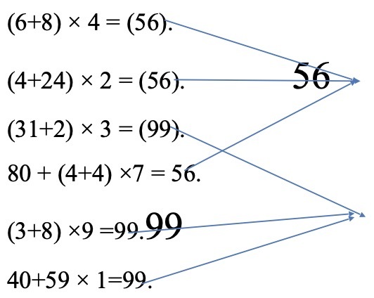 Задача: подберите из записанных чисел два слагаемых и множитель, чтобы получилось число 56.