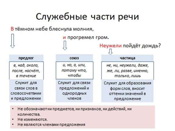 - Закрепить навык определения принадлежности слов к служебным частям речи.