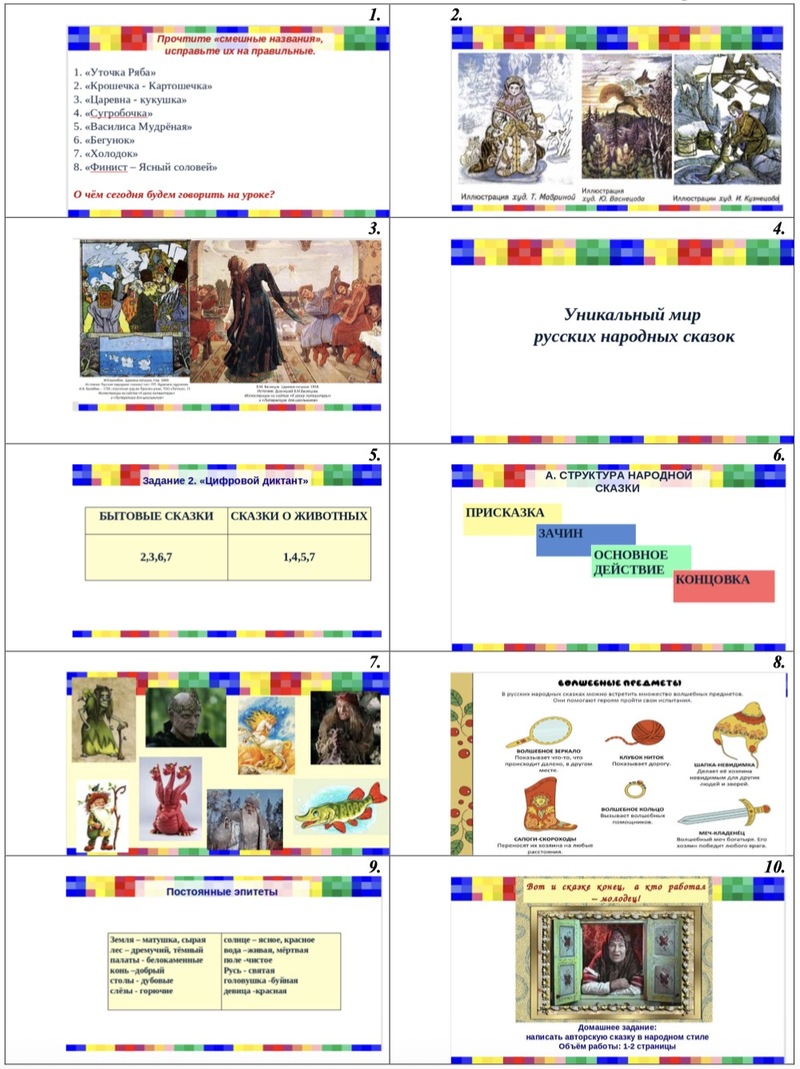 – Тема сегодняшнего урока: «Уникальный мир русских народных сказок», запишите её на карту урока. Презентация. Слайд 4