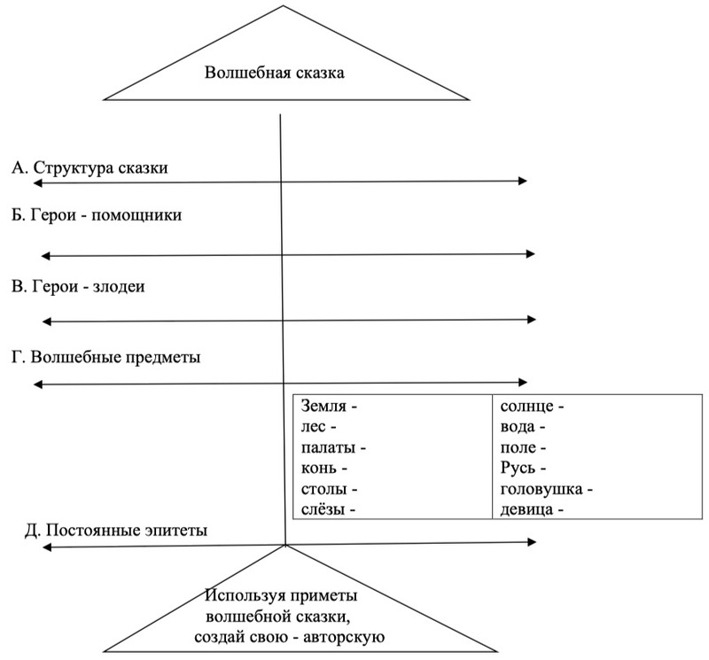 Задание 1. Прочитайте названия сказок (см. «Слова для справок»), определите, к какому виду народных сказок они относятся, восстановите схему.
