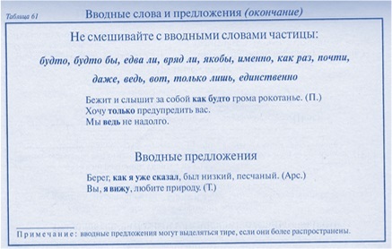 Оборудование: учебник, плакат «Вводные слова и предложения», ноутбук, мультимедийный проектор, презентация, памятки, карточки.