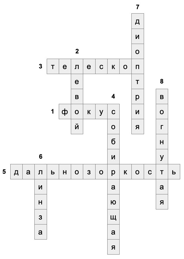 7.Единица измерения оптической силы линзы. 8.Вид линзы.