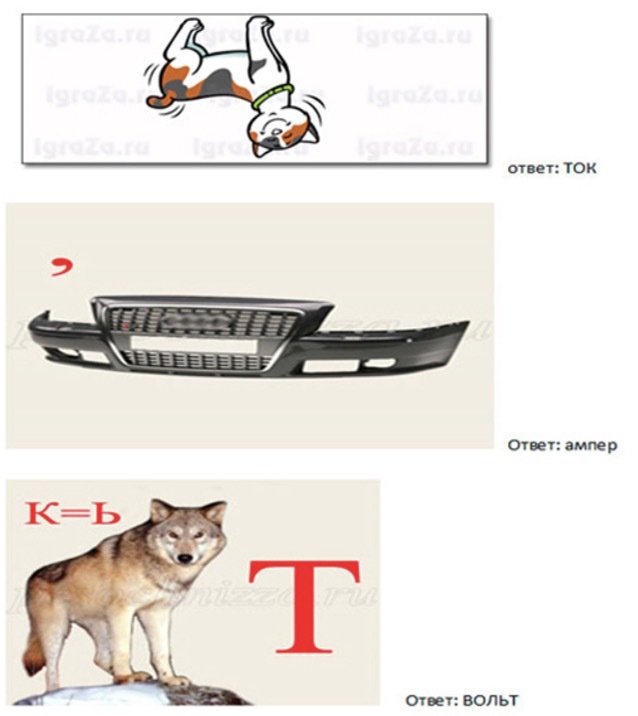 Учитель: Физические явления природы буквально окружают нас; мы сталкиваемся с ними на каждом шагу. Это – и притяжение к земле, плавление, испарение, теплопередача. Многие возможности и комфорт связаны с использованием физических законов и явлений. Телевидение, средства связи, автомобили, самолеты стали обычными благодаря физике. И следующее явление зашифровано. Отгадайте ребус