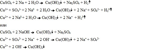 (Натрий - это активный щелочной металл, поэтому при взаимодействии с раствором соли он вступает в реакцию не с солью, а с водой содержащейся в растворе соли, с образованием щелочи. В итоге сульфат меди реагирует не с натрием, а с гидроксидом натрия)