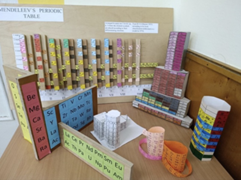 Одна группа ребят создавала модели альтернативных форм периодической системы (фото 1), другая группа школьников работала над таблицей, в которой были представлены фамилии и фотографии ученых, открывших тот или иной элемент.