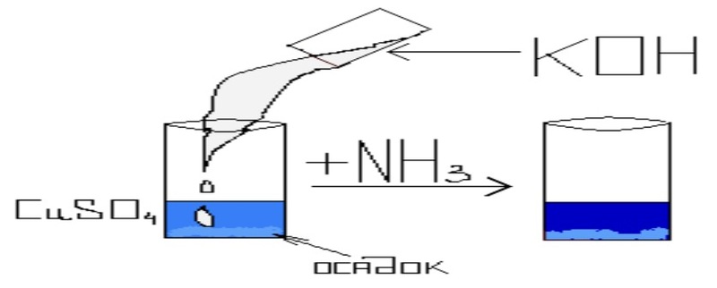 2) К раствору сульфата меди (II) прилили раствор калий гидроксида.Образовался осадок.С целью растворения осадка в реакцию добавили аммиак.Чем выступает аммиак в данном процессе?