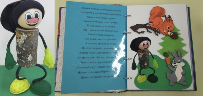 Это Эконя- герой экологического уголка, а это книга « Эконя и его друзья».