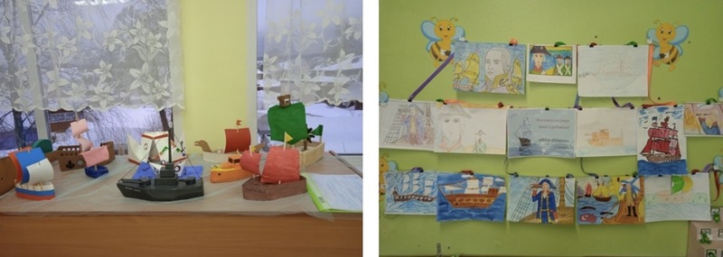 - Альбомы «Фёдор Ушаков», «Защитники земли русской», «Ордена и медали защитников земли русской». - Настольные и дидактические игры: «Морской бой», «Собери корабль», морские ходилки. - Выставка художественной литературы по теме. -Создание мини- словаря морских терминов -Создание выставки поделок детей и родителей «Семейный корабль», выставки рисунков детей и родителей « Ф.Ф.Ушаков» |