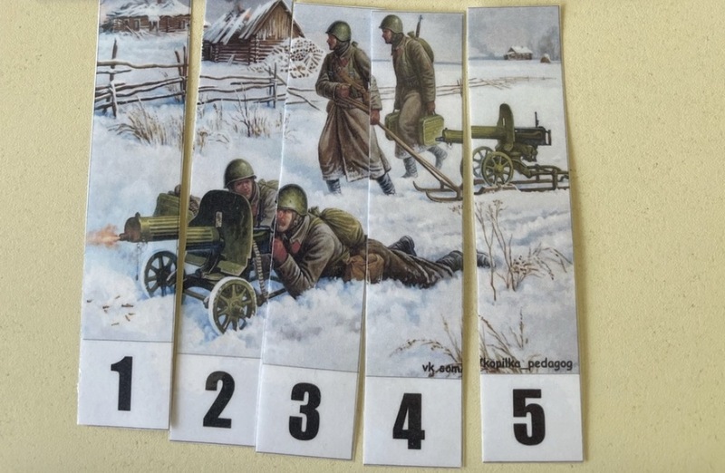 Задачи: развивать словесно-логическое мышление и внимание; умение классифицировать предметы по признакам (военные профессии, одежда, техника, оружие, медали, письма, города-герои ВОВ, животные); устанавливать причинно-следственные и логические связи; воспитывать умение играть по правилам; Воспитать уважение к защитникам Родины на основе ярких впечатлений, конкретных исторических фактов, доступных детям.