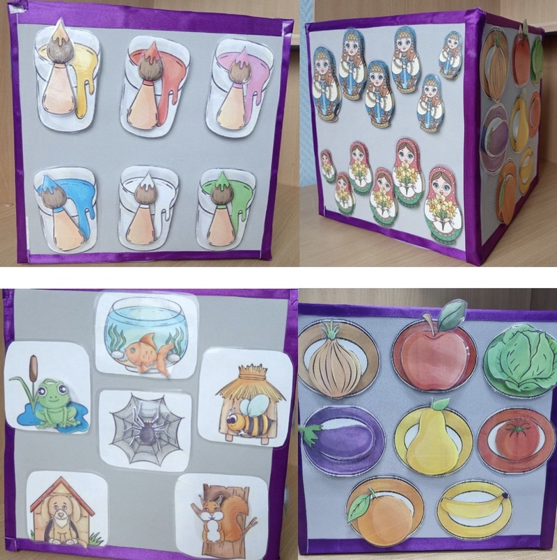 -Вторя сторона куба : сортировка по размеру . Предлагается расставить матрешек по размеру.
