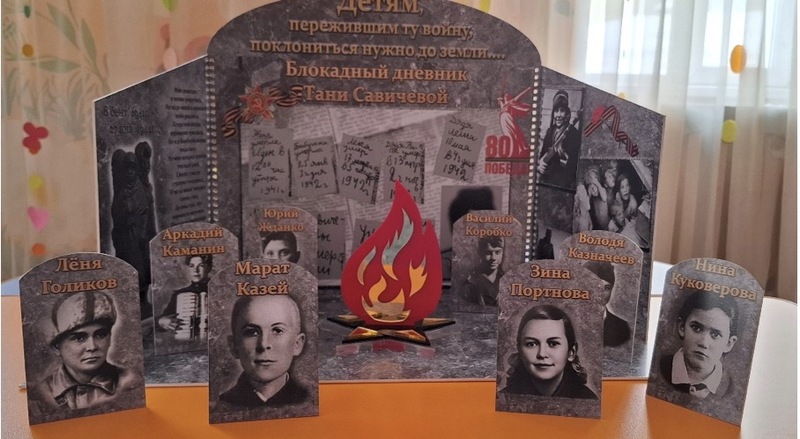 Интеграция вечного огня, фотографий детей-героев и дневника Тани Савичевой в пособие создаёт мощное эмоциональное воздействие, которое позволяет зрителю не только вспомнить события войны, но и сопереживать личным историям. Это делает наше развивающее пособие живым свидетельством героизма и трагедии, создавая пространство для осмысления и глубоких размышлений.
