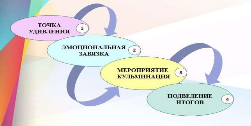 В данной работе заложена технология построения проектной деятельности, которую разработали авторы. Проект является краткосрочным и реализуется за один месяц. Для того, чтобы повысить эмоциональную напряженность проживаемых событий у участников проекта, мероприятия строятся в определенном порядке: