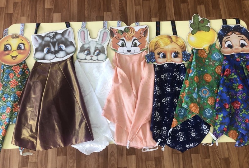 На одном фартуке, можно обыграть разные сказки, меняя только персонажи.