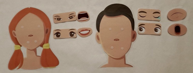 Оборудование: заготовки лиц с липучками на них, глаза и рот для каждой эмоции на липучках.