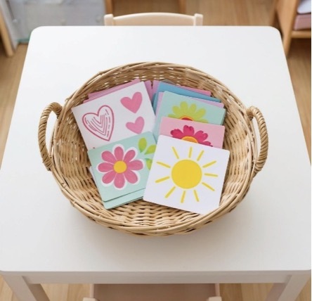 - Каждый ребенок достает из корзинки символ и пытается закончить фразу «Моя мама самая…» (красивая, ласковая, веселая) или «Я дарю маме…» (цветок, солнышко, сердечко).