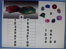 - Какой цифрой обозначается число 8? Давайте обозначим нужной цифрой камни – самоцветы. (дети на экране устанавливают цифру 8)