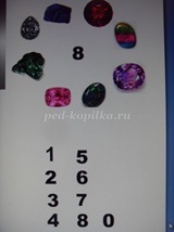 Игра с камнями самоцветными. (на экране изображение камней – 8 штук)