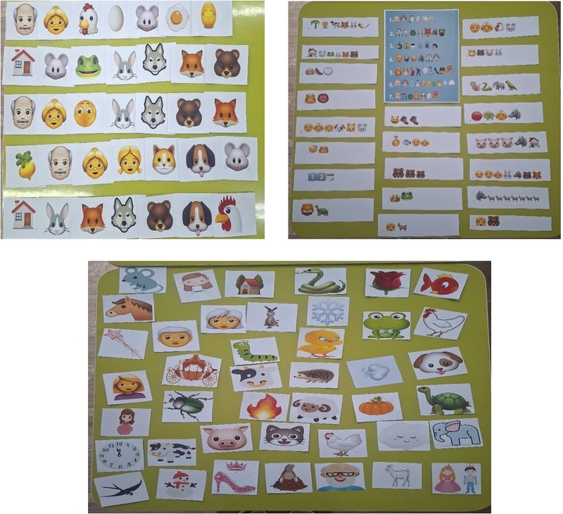 Для формирования и развития монологической, диалогической и связной речи мы создали дидактические игры: «Мир сказок» и «Составь рассказ». Игра «Мир сказок» многофункциональна и вариативна. В ней имеется набор «эмодзи»-картинок с изображением героев, которые могут встречаться в сказках. С помощью них, в первом варианте игры - «Собери сказку», дети угадывают сказку и разложив героев по ходу сюжета, могут её пересказать. Второй вариант - «Перескажи сказку»: воспитатель показывает ребёнку сюжетную «эмодзи»-картинку. Ребёнок называет сказку и описывает, что на ней изображено. При желании он может рассказать сказку полностью. И третий вариант - «Придумай сказку»: ребёнку предлагается пофантазировать и самостоятельно подобрать необходимых героев и путём совмещения их и событий разных сказок, придумать свою, а затем связно и последовательно её рассказать.