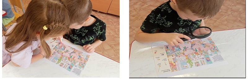 На страницах книги расположены предметы, дети должны отыскать предмет в сюжетной картинке. Детям очень нравиться искать предметы на время, кто больше найдет.