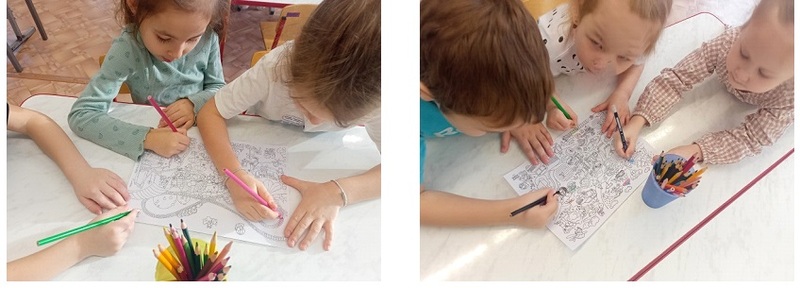 Командное раскрашивание, объединение в мини подгруппы, в результате получить результат общими усилиями.