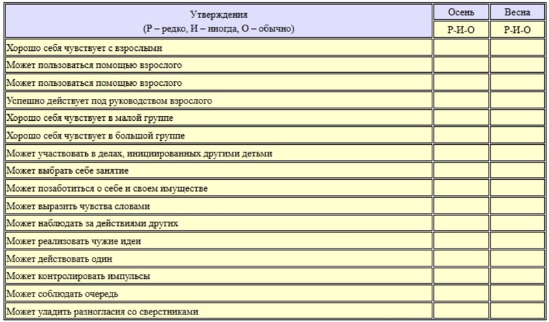 В качестве диагностики заполняем таблицу уровня социально-эмоционального развития детей.