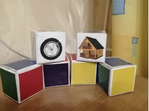 Подготовка: Приготовьте разноцветные кубики (пять и более). Внутри каждого кубика спрячьте предметы из различных материалов (стекло, дерево, пластмасса, железо и т.д.).