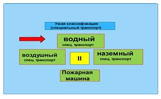 Во второй бокс закладываем задания, которые знакомят детей более подробно со специальным транспортом. Классифицируем его так же по месту передвижения.