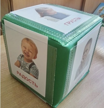 2. «Угадай настроение»: один ребенок изображает в жестах и мимике эмоцию на кубике, а другие дети угадывают ее, затем картинка на кубике показывается остальным.