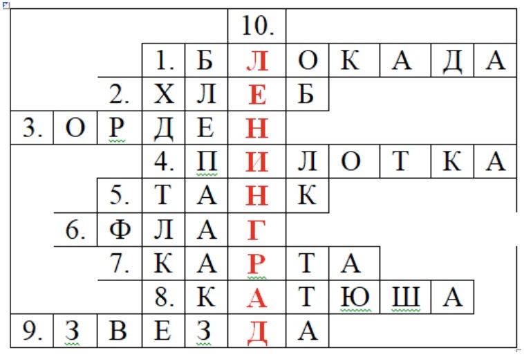 10. Какое слово получилось? Город-герой - ЛЕНИНГРАД!