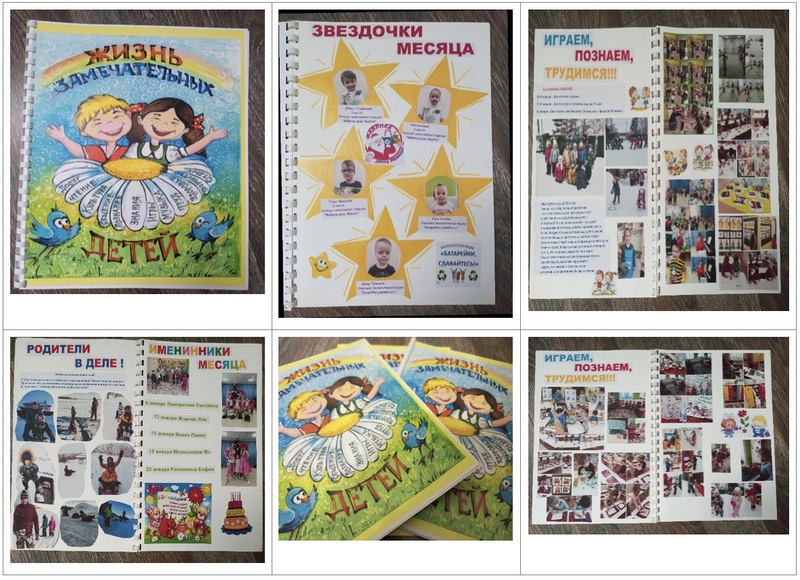 Самое главное, что эта идея нашла свое применение и в работе с другой возрастной категорией детей. Если до этого моя находка была реализована с детьми 6-7 лет, то в настоящее время я применяю ее с детьми 4-5 лет. Да, ни для кого не секрет, что в этом возрасте осознанности меньше, не все дети могут объяснить свои действия, но в то же время результат на лицо. Вашему вниманию представляю журналы, созданные уже в этой группе. Практически выполняются те же задачи. И если говорить о главной цели создания журнала - мотивации к той или иной деятельности, то дети, которые сторонились участия в мероприятиях, мало проявляли себя в той или иной деятельности, сейчас начали проявлять. С наибольшим удовольствием и родители стали принимать свое участие в жизни группы и сада.
