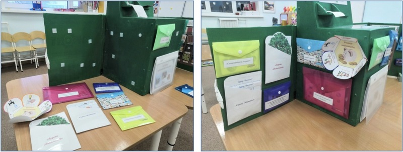 Описание пособия: Игровое пособие представляет собой игровой модуль для сюжетно-ролевых игр, имеющий вид банкомата Сбербанка, и лепбук, наполненный развивающими дидактическими играми и упражнениями по формированию финансово – экономических представлений дошкольников. Наглядный материал для игр хранится в специальных папках – кармашках, прикрепляющихся к модулю (банкомату) с помощью липучек, что позволяет легко заменить игры на новые и сохранить интерес детей к данному пособию.