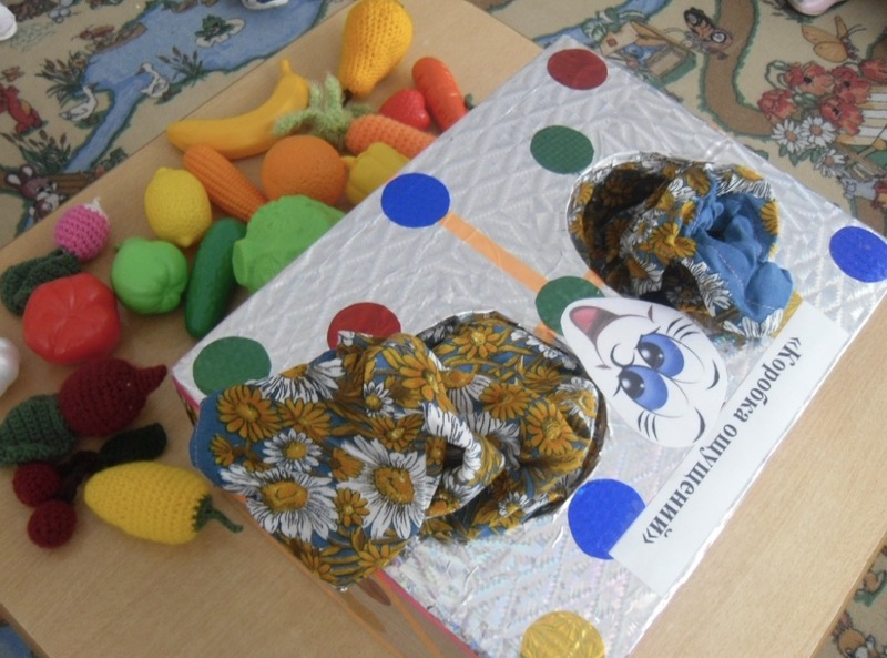 Педагог начинает занятие с представления дидактического материала: «В «Коробке ощущений» находятся разнообразные овощи и фрукты. Сегодня мы будем работать над развитием тактильной чувствительности и научим детей различать эти объекты на ощупь».